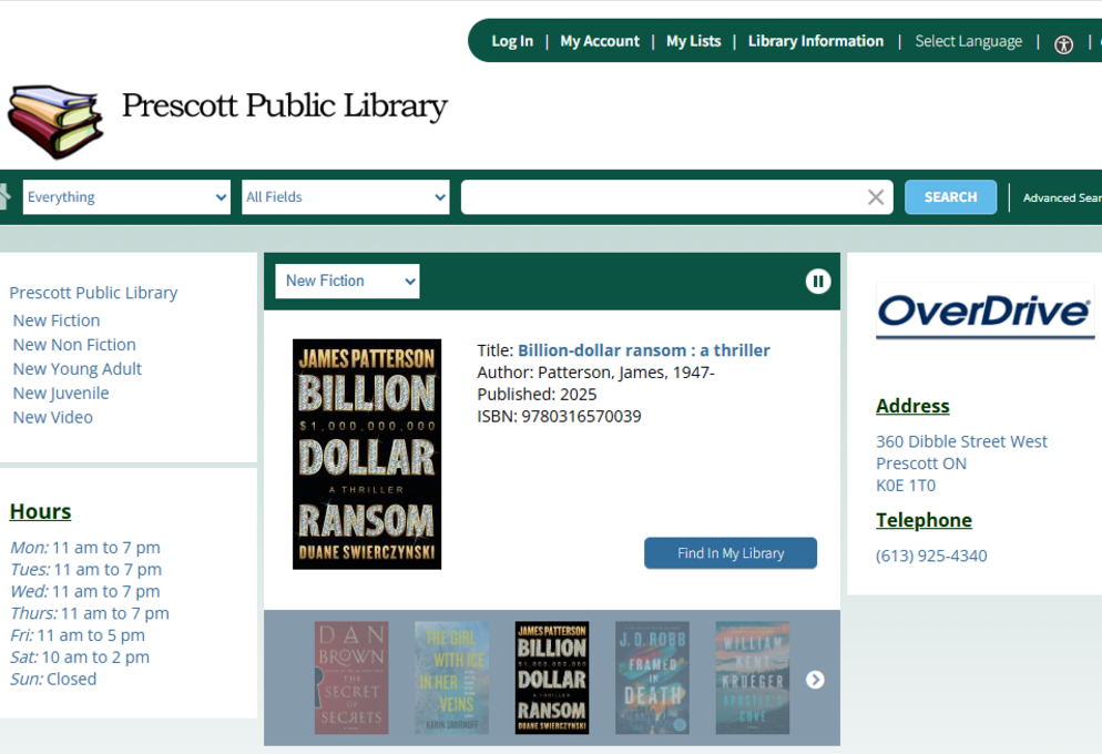 Send us an email at Librairian@ PrescottPublicLibrary.ca or complete the following form: